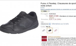 On a deja parlé sur un article precedent de baskets puma pour filles à 17.50 euros mais bizzarement sur une autre reference , il y a ces memes baskets mais aussi en noire et bleu de disponibles au memes prix sur des tailles differentes ..