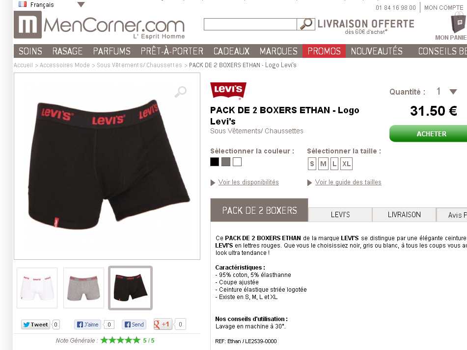2 Boxers Levi’s à 13.75 euros contre entre 20 et 30 ailleurs