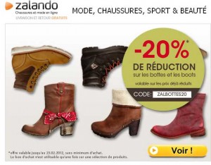 20 pourcent de remise sur les bottes et boots sur zalando jusqu’au 23 fevrier 2012