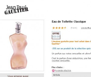 26.55 euros port inclu l’eau de toilette femmes classique de Gaultier 20ml .. jusqu’au 13 mai