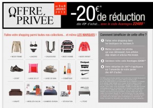 Avant les soldes, une promo qui peut etre interessante sur le site des 3suisses : en effet le code promo « 22489 » donne 20 euros de remise pour 49 euros d’achats ..