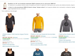 30 pourcent de remise sur des vetements O Neill