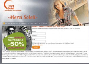 Avec les beaux jours qui arrivent , vous désirez peut etre paraitre deja bronzé ? Si c’est le cas, l’offre proposée par les centres de bronzage PointSoleil peut vous interesser : en effet en s’inscrivant sur leur site , on obtient par mail un bon de réduction de 50% pour une seance de bronzage de 30mn .. Seance qui doit avoir lieu d’ici le 10 avril ..