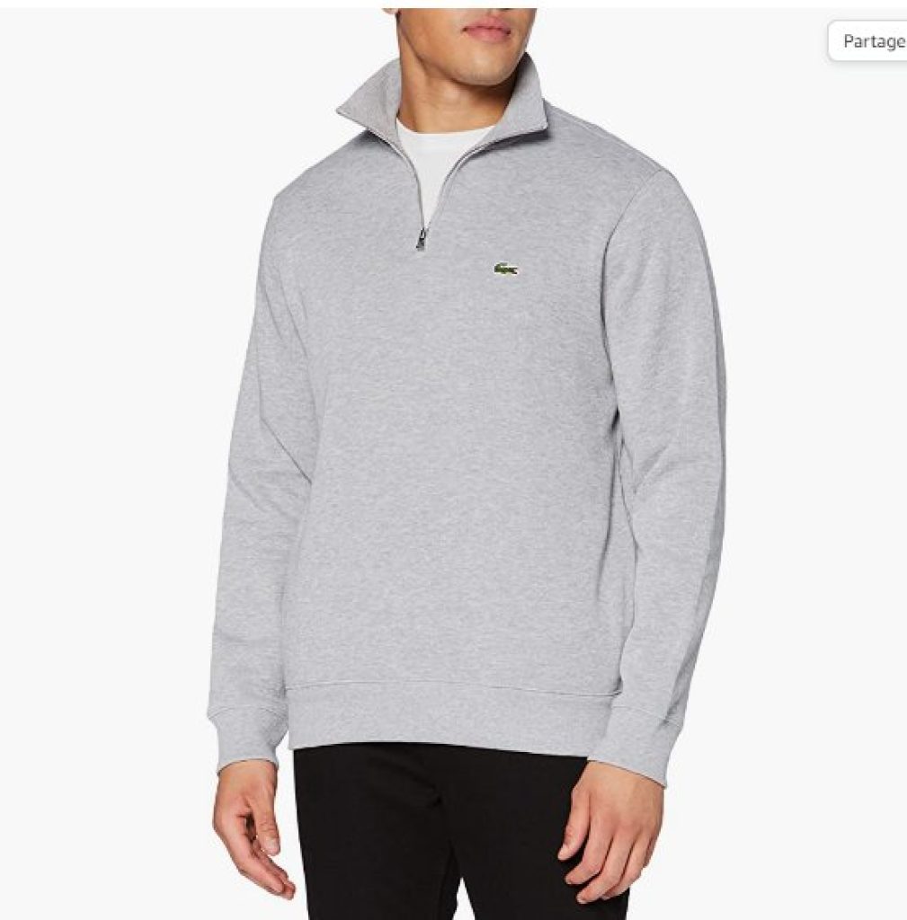 On peut voir que ce sweat lacoste , dispose d’un col montant zippé