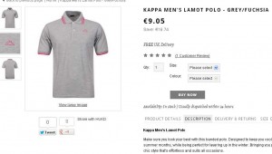 Le Polo Kappa Gris et Fushia est à 9.05 euros un super prix donc, mais en plus en saisissant le code promo « CLOTHING15 » on a 15% de remise supplementaire et le prix passe donc à 7.69 euros port inclu ..
