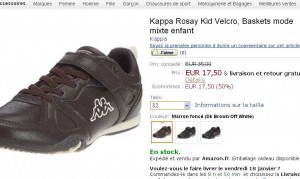 Besoin de baskets pour votre fils ? Sur amazon encore une fois une bonne affaire gràce à la deuxieme demarque .. On trouve en effet des baskets de la marque Kappa à 17.50 euros port inclu ..