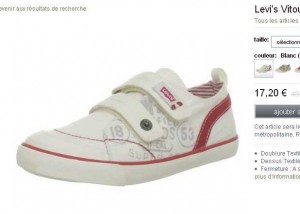 Après la paire de baskets levi’s virtuel à 17.20 euros , on peut aussi trouver au meme prix des paires de baskets à scratch modele Levi’s Vitou sur javari ..
