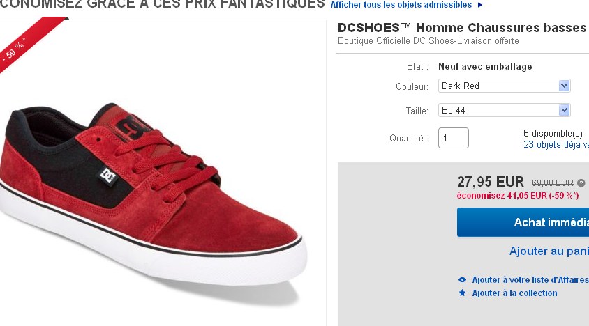 Sur le site officiel dc shoes , elles sont aussi à prix réduits mais à 34.95 , on gagne donc encore 20 pourcent …