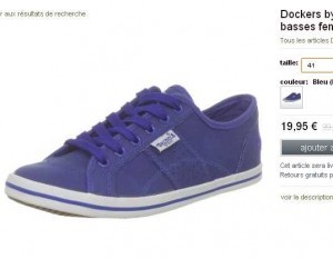 Encore un bon prix pour des chaussures pour femmes .. Sur javari dans les soldes on a une paire de baskets dockers pour femmes.. Paire de baskets bleues disponibles du 36 au 41 ..