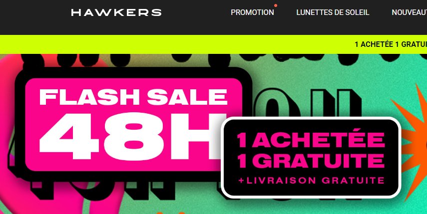 Actuellement jse deroule une offre promotionnelle chez Hawkers jusqu’au 17 septembre pour deux paires de lunettes de soleil achetées , la moins chere gratuite .. et en plus la livraison gratuite