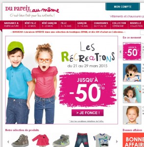 50 pourcent de reduction sur un certain nombre d’articles sur la boutique en ligne de vetements pour enfants Du Pareil Au Meme ..