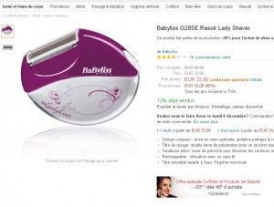 Bon plan rasoir feminin babylyss à 23.9 euros le 6 decembre … et possibilité d’avoir encore moins cher