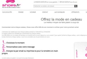 Bon plan pour s’acheter des chaussures ou pour en offrir ! Sur le site shoes (du meme groupe que spartoo) , on peut voir exactement la même promotion pour l’achat d’un cheque cadeau :