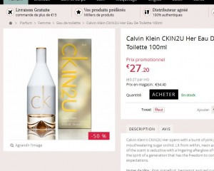 Bon prix parfum femmes: ckin2u her 100ml à 27 euros