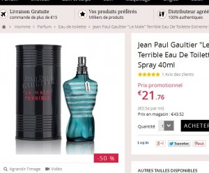 Encore un super prix pour une eau de toilette : Pour hommes, Jean Paul Gaultier « Le Male terrible » en vaporisateur de 40ml est à 21.76 euros livraison incluse sur feelunique ..
