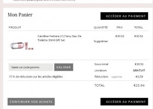 Vendu déjà pas cher à 30.52 euros sur feelunique, le code promo « SALEONSALE15 » fait passer le montant à payer à moins de 26 euros …