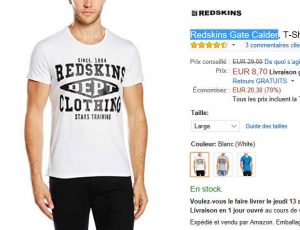 Bonne affaire pour un tee shirt pour hommes … Avec le REDSKINS GATE CALDER que l’on peut acheter entre 8 – 9€ sur amazon , dans plusieurs tailles et couleurs ..