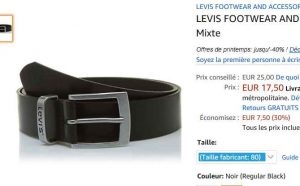 Bon prix sur amazon, pour une ceinture en cuir de la marque LEVIS ..