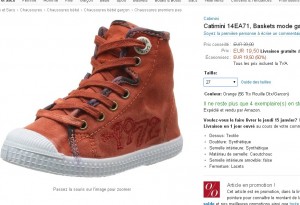 Elles sont aussi en solde à 19.5 euros sur spartoo mais qu’avec deux seules pointures dispo … sur sarenza elles sont à 40 euros ..