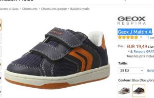 Par exemple des chausssures GEOX J MALTIN à moins de 20€ … Des sneakers à scratchs disponibles dans des pointures allant du 28 au 35 …