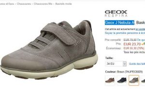 UNe super affaire encore dans les soldes pour une paire de chaussures en cuir de marque : Les GEOX J NEBULA de couleur grise sont à 24.7€ dans pas mal de pointures …