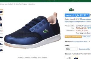 Bonne affaire pour des baskets pour femmes de la marque LACOSTE : avec les lacoste light à 44.5€ sur amazon, dans la couleur bleue ..
