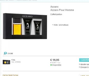 Et une autre super offre eau de toilette pour hommes chez douglas parfumerie : le coffret Azzaro est à moins de 20 euros .. Coffret incluant l’eau de toilette 30ml + 1 gel douche et un apres rasage .. pour 19.95 euros  donc ..