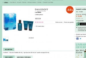 Coffret eau de toilette hommes Cool Water Davidoff à moins de 20 euros