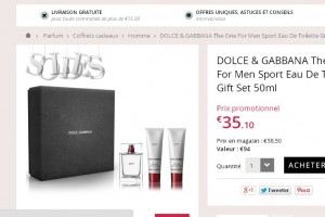 dolce-gabanna-theone-sportEncore une tres bonne affaire pour de l’eau de toilette pour hommes : 31.5 euros le coffret the one sport de Dolce et Gabbana sur feelunique … 35 – 10% avec le code promo « FINAL10 » …