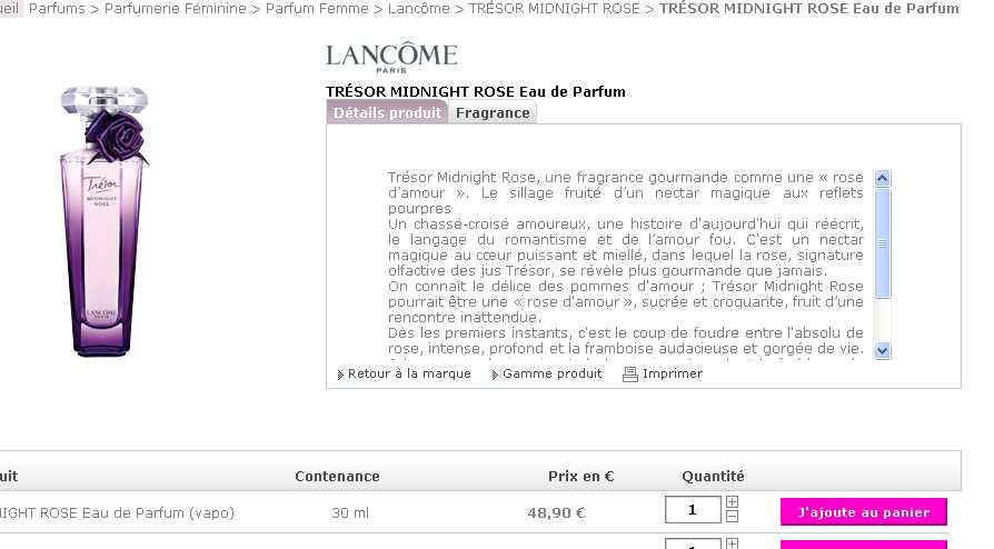 sur marionnaud comme sur les autres parfumerie en ligne, le vapo 30ml de tresor midnight est à 48.9 euros sans les frais de port ( entre 3 et 4 euros )