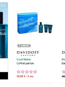 Par ailleurs, si on commande pour au moins 30 euros on peut utiliser l’un des codes de réduction suivants : DGL10 donne 10% de remise pour 30 euros d’achats, DGL15 15% pour 60 d’achat, et DGL20 qui donne 20% pour 90 euros d’achats .. Ces codes étaient sensés ne pas etre cumulables avec les articles en promo mais ils passent à l’heure actuelle sur les coffrets davidoff
