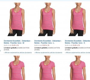 On trouve par exemple un débardeur Fushia/Ecru pour femmes à 4.76 ou 5.16 euros port inclu suivant les tailles ..