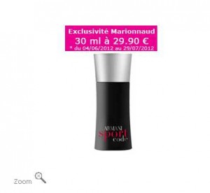 L’eau de toilette pour hommes Armani Code Sport en flacon de 30ml coute normalement autour de 45 euros hors frais de port (45.90 chez sephora, 45 chez nocibe … ) .. Mais sur le site marionnaud, le flacon est en promo à 29.90 euros ..