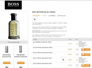 Bonne affaire sur l’eau de toilette Homme Hugo Boss sur Nocibe : le vapo de 200ml est vendu au meme prix que celui de 100ml soit 62 € port inclu (les frais de port etant gratuit à partir de 60€) ..