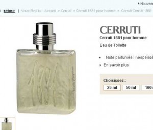 Eau de toilette Cerruti 1881 25ml à 15,20 euros (contre pres de 30 normalement)