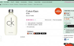 Eau de toilette Ck One de Calvin Klein à 19.99 euros en 50ml .. toujours dispo