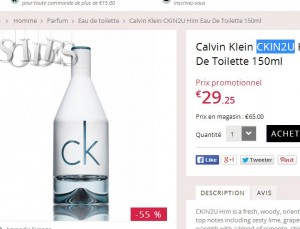 Encore une tres bonne affaire eau de toilette sur feelunique … avec l’eau de toilette CKIN2U de calvin klein en vapo de 150ml à moins de 30 euros port inclus ….