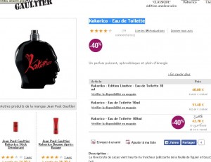 Eau de toilette Kokorico de gaultier à 42.78 euros en 100ml contre autour de 70 normalement