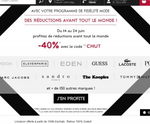Offre mode qui peut etre interessante sur le site galarie lafayette … Il y a 40% de remise sur de nombreux articles de marques jusqu’au 24 juin … Il faut pour cela saisir le code promo « CHUT » …