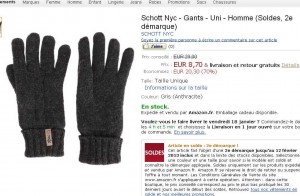 Les gants en laine / acrylique de la marque américaine Schott sont soldés à 8.70 euros au lieu de plus de 20 euros ..