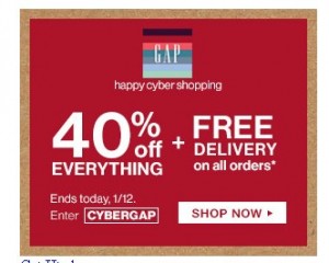 Gap : 40 pourcent de remise et livraison gratuite le 1er decembre