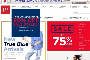 Vous aimez la marque gap … Sur le site de la marque, le pourcentage de remise sur certains articles a encore augmenté : jusqu’à 75% et en plus on peut avoir 20% de remise supplementaire en utilisant le code promo « BOXINGGAP » .. Un code valide uniquement le 26 decembre ..