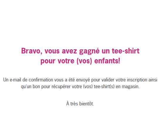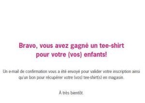 Apres s’etre inscrit au concours, on recoit un email avec un lien de confirmation , une fois que l’on clique sur ce lien on arrive sur une page qui indique si on a gagné et on recoit alors un deuxieme mail avec un bon à imprimer à presenter en magasin pour recuperer le lot …