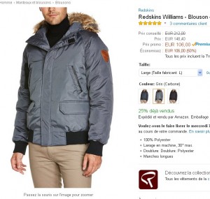 Gros blouson hiver redskins à 106 euros le 6 octobre .. faire vite