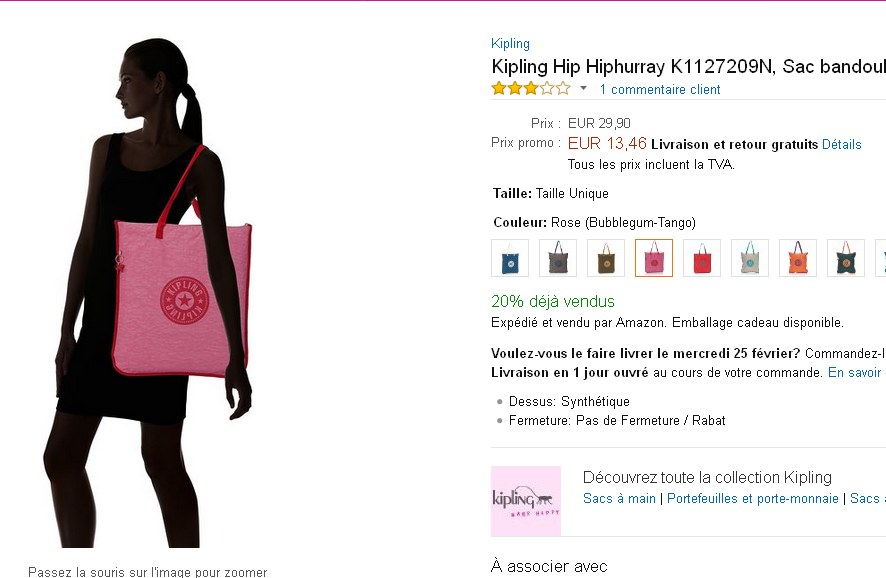 Home » Beauté - Mode - Santé » Gros sac cabas kipling à moins de 14 euros .. le 24 fevrier Gros sac cabas kipling à moins de 14 euros .. le 24 fevrier Bons plans astuces 24 février 2015 Beauté - Mode - Santé SaveSavedRemoved 0 Bonne affaire pour un gros sac cabas kipling proposé en vente éclair sur amazon le 24 fevrier … Le kipling hip hiphurray est donc à 13.46 euros en rose .. Grand sac de 43 x 1 x 48 cm … Voir ce sac kipling