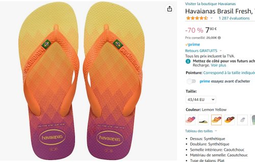 Grosse réduction sur Amazon , sur plusieurs modeles de tongs et claquettes de la marque bresilienne avec des prix de moins de 8€ pour certains modeles