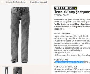 Un jeans skinny jacquard TEDDY SMITH disponible en 8 , 10 , 12 , 14 ans :