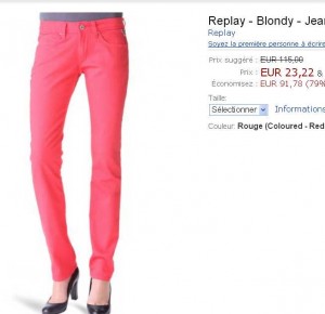 jeans replay rouge pour femmes à 23.22 euros port inclu