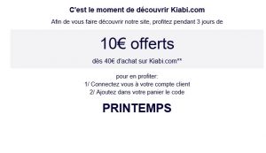 Pour économiser sur une commande de vétements sur la boutique en ligne KIABI , voici un code de réduction valable du 21 au 23 avril :
