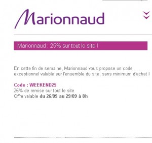 Marionnaud .. 25% de remise sans mini jusqu’au 29 septembre